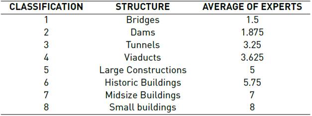 About the research, it is noted that only a few experts returned with the answers. Seven experts answered the published survey and one professor provided feedback orally via Skype, totaling responses from eight experts or 53.33% of those administered the survey. From the sample one had a degree in civil engineering, two were Master of Civil Engineering, five were Doctor of Civil Engineering.