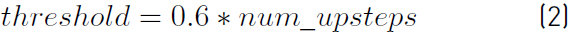 It is worth noting that the variable num_steps increases as long as the slope of the PPG wave is positive. If the slope changes from positive to negative, num_steps is reset to zero, whether or not its value has reached or exceeded the threshold. Once the peak is detected, the onset of the systolic rising edge is marked as the valley that precedes the systolic peak. The variables possible_peak and possible_valley are flags by which it is possible to ignore ripples and even the diastolic peak, which could be erroneously labeled as a systolic peak. The threshold empirically initializes at 6 and it updates its value with every heartbeat as expressed by Equation (2):