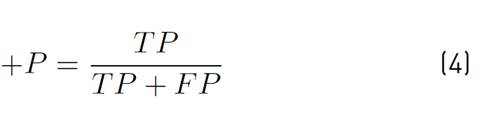 As developed in previous studies [1, 3, 4], the performance of each algorithm was evaluated by calculating its sensitivity (SE) and its positive predicted value (+P), each of which is given by Equations (3) and (4):