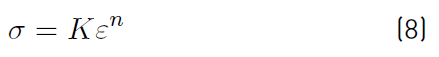 In the same table, the plasticity row refers to the resistance coefficient (K) parameters and the exponent strain hardening (n), to adjust the relationship between the stress and strain in the plastic zone, through a Hollomon type equation (Equation. (8)]. [26]