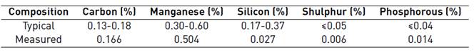 The electrode used was AWS E6013. Table 3 shows the mechanical properties of the weld deposit. In the first column, we can observe the ultimate tensile strength of the weld deposit, which is superior to the base material (referred to in Table 2]. Therefore, the selecting of this electrode was feasible.