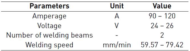 Electrode diameter of 3.2 mm was selected and one pass is made for each side of the welded joint. Due to the metallurgical characteristics of the base material, it was not necessary to apply the pre-heating to the plates.