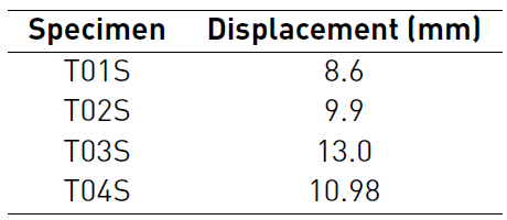 In Figure 3a, time curve associated with the displacement in the T01S test specimen is shown.