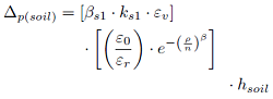 is the calculated average vertical resilient strain in the layer (in./in.); hsoil is the thickness of the unbound layer (in.); ks1 is a global calibration factor (ks1 = 1.673 [granular material], ks1 = 1.350 [fine soil]); and βs1 is a local calibration constant (1.0 by default). The models to estimate the parameters β,