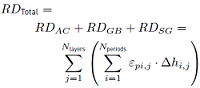 Where RDtotal is the total permanent deformation made by the contributions of asphalt (AC), granular bases (GB), and subgrade (SG) layers. The critical responses to compute rutting are the mid-depth of each layer (or sub-layer), the top of the subgrade, and six inches below the level of the subgrade.
