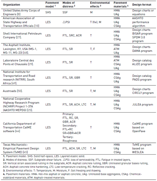 Table 3 summarizes the characteristics of several empirical and M-E methods, providing an overview of the development of such procedures.