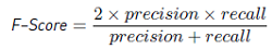 F-Score, defined as the harmonic mean of precision and recall [Equation 18].