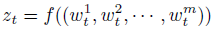 Function f: {0, 1}m → R gives the aggregate power consumption of a house for a set of appliances. A function g: R2d+1 → Rm is considered, where the positive number d determines a time neighbourhood for the predictions [Equation 7].