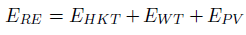 Like the previous case, total renewable energy (ERE ) is composed of: hydrokinetic energy (EHKT ) + wind energy (EWT ) + photovoltaic energy (EPV ).
