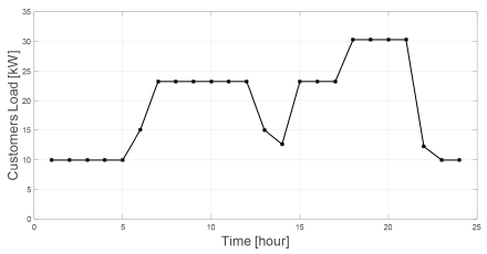 The case under study is a public University located in southern Ecuador. The average daily power demand curve is shown in Figure 1. It is evident that, the peak demand appears at night from 18:00 h until 21:00 h and the minimum demand occurs in the early hours of the morning that corresponds mainly to lighting and video surveillance systems.