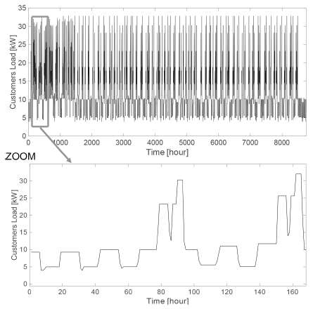 With respect to seasonal demand, the first three months of the year have considerable variations, in other months the demand maintains the same trend. In Figure 2, the seasonal demand taken from the electric meters located in the university is indicated. In addition, a zoom has been made to show in detail the first days of the year.