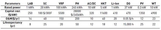 This section defines the types of energy flow control to minimize the penetration of the diesel generator. Table 1 shows the parameters used in each component for the simulation, the values have been obtained from HOMER as this tool presents updated reference prices.