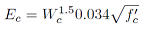 Where ρ is the density in Kg/m3, M is the sample mass in Kg, V is the volume in m3, Ec is the elasticity modulus in MPa, Wc is the apparent density of the hardened concrete in Kg/m3, and is compressive strength in MPa.