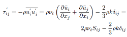 where ρ is the fluid density, μ denotes the fluid dynamic viscosity, p is the static pressure, ui represents the i-direction flow velocity vector component. The term ρuiuj is the Reynolds stress tensor and is initially unknown. Assuming Boussinesq’s hypothesis [22], in which the Reynolds stress tensor (τij ) is proportional to strain-rate tensor (Sij ) (3):