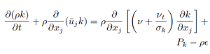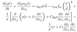 The Spalart-Allmaras model consists of one transport equation based on the kinematic eddy viscosity parameter as proposed in [25]. The transport equation for
