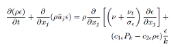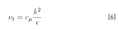 In these equations, cμ , σk , σϵ , c1ϵ and c2ϵ are constants. σk and σϵ are Prandtl numbers connecting the diffusivity of k and ϵ to the eddy viscosity νt . All values are provided in [21].