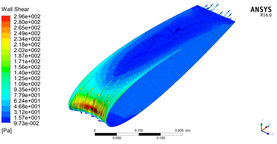 The flow behaviour for the case with WLE (Wavy Leading Edge) is presented in this section by means of pressure and vorticity fields as well as wall shear stress, lift and drag forces and, finally, pressure coefficients on the airfoil surface. As aforementioned, all simulations were carried out for a Reynolds number of 3X106 considering the Spalart-Allmaras turbulence model.
