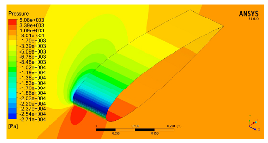 For the numerical simulations, the following flow conditions were used: Reynolds number 3X106, Mach number 0.269, temperature 298 K, reference pressure 101325 Pa, density 1.185 kg/m3, and the fluid viscosity of 1.836X10−5 kg/m.s. Due to the low Mach number of the flow of 0.269, the simulations are carried out considering the flow as incompressible.