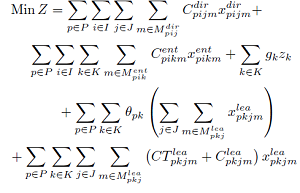 The Objective function (1) minimizes transportation costs, involving either direct shipment costs as well as costs for shipments carried out by LICs. Likewise, opening and operational costs related to LICs as well as transshipment costs are also considered. Constraints (2) ensure that the total demand of any supply zone i∈I must be met, either through direct shipments between corresponding origin-destination zones or through a LIC. It also guarantees that, regardless of using a LIC, peer-to-peer demands must be strictly satisfied. Constraints (3) set lower and upper bounds for the operational capacity for LIC candidates which direct impact the decision of opening a LIC. Constraints (4) and (5) ensure that peer-to-peer demands are strictly enforced. Such a goal is attained by disaggregating inbound and outbound flows at a LIC. Accordingly, the switching of origin-destination pairs at a LIC is thus prevented, even if that turns out to be cost attractive. Finally, the domain of the decision variables is given by Constraints (6) - (10). Besides, Constraints (11) and (12) can also be added to the model. Constraint (11) ensures that there is a maximum budget limit 𝐹 for investment on LICs where 𝑓 𝑘 is the investment to open LIC 𝑘∈𝐾, and Constraint (12) considers that a public policy can be applied where a maximum number 𝑝 of LICs must be respected.