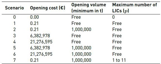 Moreover, disregarding a minimum volume that guarantees the economic viability of each facility (as Scenario 1 and 3) is not realistic. As result, Scenario 1 has a similar cost of Scenario 2; however, it opens almost the double of LICs. When including the initial costs that were considered as symbolic, it becomes clear that the amount of facilities indicated in Scenario 1 would not be feasible.