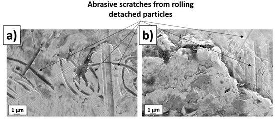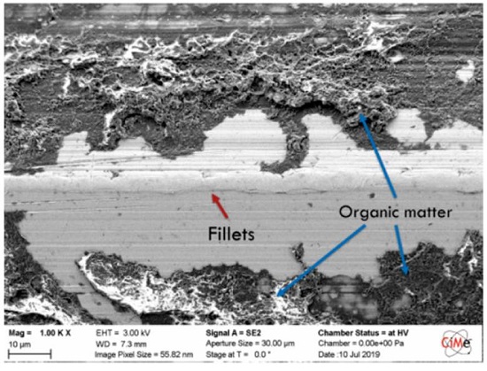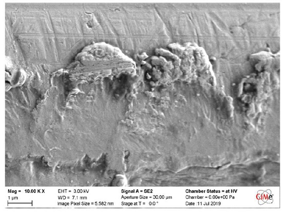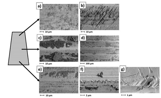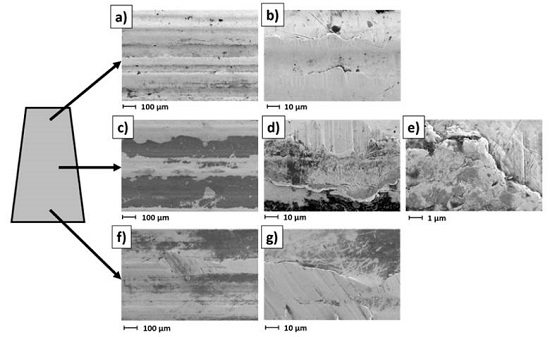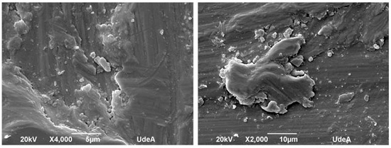 Furthermore, a closer observation of the smeared areas in Figure 5 shows no cracks or their propagation in distal zones.