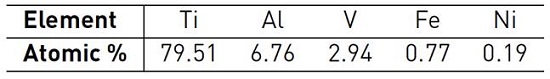 Titanium alloy explant showed the composition indicated in Table 2, and the EDX spectrum is shown in Figure 2. A conventional α + β - Ti-6Al-4V alloy was identified[21], even though Fe and Ni are slightly high.