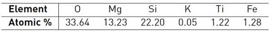 Images from the middle part of the trunnion show ploughing, although to a less severe degree than in the distal area. Moreover, some particles of organic material (biofilms), which composition is shown in Table 3 and Figure 4, can be found at this distance, as shown in Figure 3 d). The entry of this material shows that even if the obstruction is produced at the entrance, material and particles can pass through the length of the trunnion.