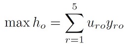 Equation (10) represents the first-stage score obtained by professor 𝑜 (ho ), which corresponds to the weighted sum of the outputs in a BoD approach. Equation (11) corresponds to the linearization of the classical DEA model in its ratio form[55] in the special case where there is a dummy input with a constant value (i.e., a notational 1). Finally, Equation (12) defines the decision variables (i.e., weights of each teaching output).