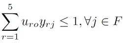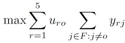 Equation (5) is the objective function that maximizes the number of courses covered considering professors’ preferences for every course. The first term in the objective function corresponds to the coverage of courses, and the second term is the professors’ preferences, following the structure of a lexicographic priority model. Equations (6) to (9) are the constraints of the model. Equations (6) represents the coverage of the courses guaranteeing that at least k professors could cover one course if it is counted as k covered. Equations (7) are the maximum capacity of coverage of each faculty, in number of courses. Finally, equations 8 and 9 define the decision variables as binary.