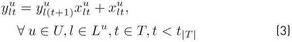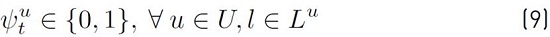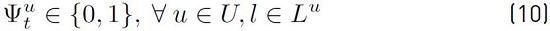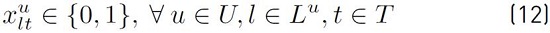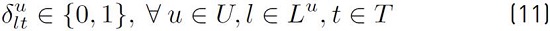 Lets consider the binary variable that indicates if user u has appliance l ∈ Lu turn on at time t; and variable