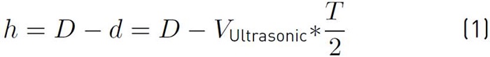 Where: h is draft, D height from the ultrasound emitter to the bottom or flat plate of the collector, d distance between emitter and free surface, V ultrasound speed.