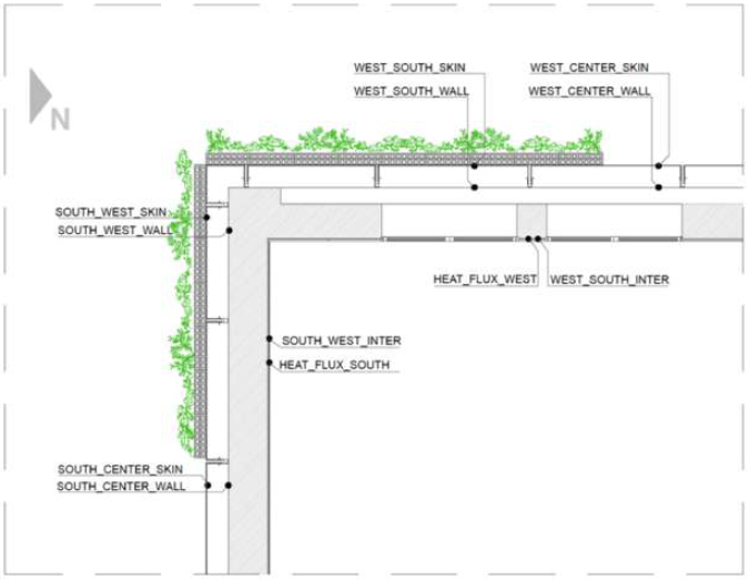 There is a total of eight sensors on the façade, four in each orientation. Of these four, one pair measures the surface temperatures of the vertical garden (A and B, E and F), while the other pair is placed on the metal skin (C and D, G and H). Both pairs of sensors measure the surface temperature on the envelope and the immediate wall [Figure 5].