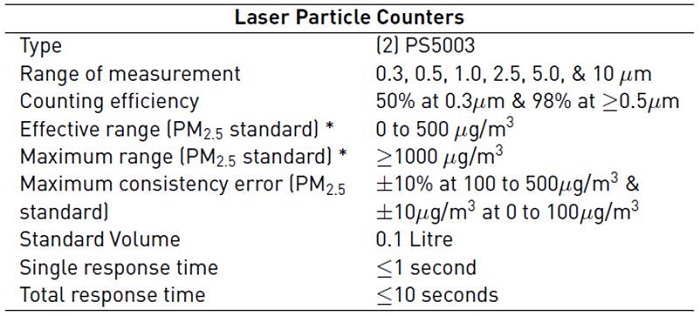 The two vegetation towers are equipped with two types of sensors for the measurement of suspended particles and polluting gases. These are the Uhooair sensors, which measure NOx, COx, COVx, O3, PM2.5, etc. [Table 1] and Purpleair sensors, which measure particles in suspension PM 0.3, 0.5, 1.0 2.5 and 10 μm [Table 2] tower, where the composition of the air is measured after the decontamination process.