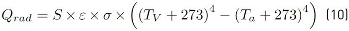 Qrad = Radiant heat flow emitted by the glass surface (W)