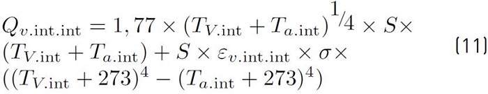 The radiation emitted on each side that has contact with the chamber, both the exterior and interior, has not been evaluated assuming that both are at a very close temperature, and therefore, the heat transmitted by radiation between both is negligible.