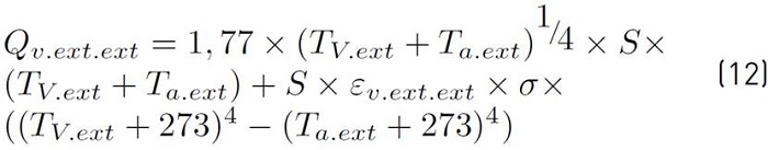 The heat flow transmitted by convection and radiation to the outside can be obtained with Equation (12).