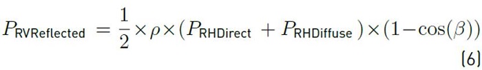 The solar radiation reflected on the exterior glass (PRVReflected) is obtained with Equation (6).
