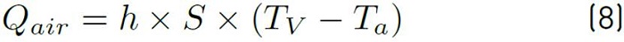 Qair = Heat flow transmitted by convection to the air in contact with a vertical surface (W)