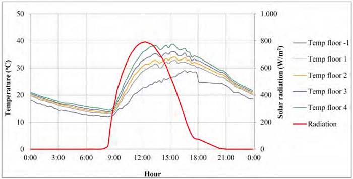 In the winter season of 2018-2019, it is the intention to validate the procedure described above by measuring the energy savings generated in the headquarters of the Regional Energy Agency of Castilla y León (EREN), located in the city of León, and which provides of a double-skin glass-glass façade with a configuration similar to that presented and a glazed surface in the south orientation of 1,032 m2. In this building, probes have already been installed for the measurement of temperature and relative humidity outside, the interior temperature of the chamber at different altitudes, incidental solar radiation on the façade, ventilation airflow of the chamber, etc., as well as a switchboard that will allow the continuous recording of the variables measured by the probes.