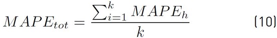 MAPEh be the MAPE value for a predicted horizon h, the extension of MAPE to the complete testing set is defined by Equation (10).