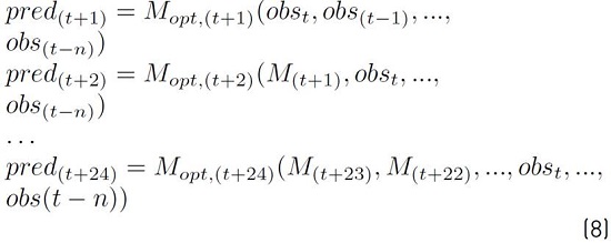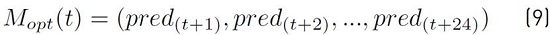 Finally, the complete model Mopt is computed by Equation (9). The output of the model is a 24 valued vector, one prediction for each hour.