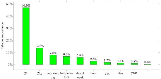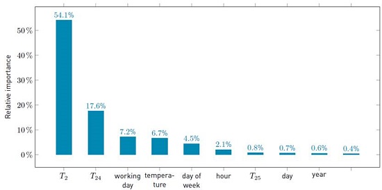 The rest of features were removed from the dataset. Ten features were selected based on their relative importance in the industrial demand scenario: