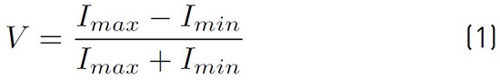 are the maximum and minimum intensity of the central bright and adjacent dark fringes, respectively. In this way, visibility can be taken as a measurement of the state of spatial coherence between a pair of points of the wavefront.