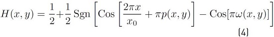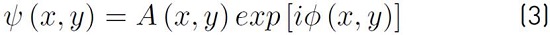 The spatial carrier phase in the argument of the first cosine function in Equation 4 represents the slope, the inclination of the wavefront. This tilt accounts for the separation of the diffraction orders when the optical reconstruction of the Lee hologram is done by means of Fourier conjugated planes. In this way, if the incoming beam to the system is a plane wave TEM00 or a Gaussian beam, the outcoming beam, after the whole process of spatial modulation with the DMD and the spatial filtering, will have a wavefront with the shape shape of ϕ (x, y).
