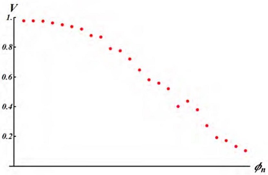 In each interferogram, the visibility is calculated from the central peak and adjacent valley. The resultant curve is shown in Figure 3. The visibility was being modulated from its maximum value around 1.0, to a minimum of 0.09.