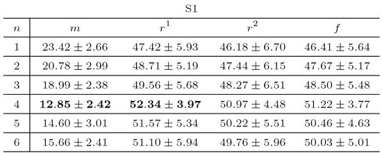 For S1 strategy from Table 3, the minimum of the average of the score function of the three last cases is obtained using a neighborhood of n = 1 neighbor. These minimums are 47.42%, 46.18% and 46.41% for the components residual1, residual2 and full, respectively. The minimum for main component (case 1) is reached considering n = 4 neighbors and it is 12.85%. The maximum computed using n = 4 neighbors for the score function associated with components residual1, residual2 and full are 52.34%, 50.97% and 51.22%, respectively. The component main reached its máximum of 23.42% considering n = 1 neighbor.