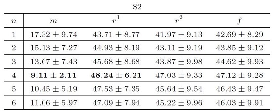 Respecting S2 strategy [Table 4], the maximum and minimum of the average of the score function are obtained for the components residual1 (case 2) and main (case 1), respectively. Both values are attained using a cross shaped neighborhood of n = 4 neighbors, and they are 48.24% and 9.11%, respectively. For component residual1 (case 2) the minimum is 43.71% and it is computed for n = 1 neighbor. Concurrently, the maximum value computed for case 1 is 17.32% and it is also attained with n = 1 neighbor. Moreover, the score function reached the maximum for components residual2 (case 3) and full (case 4) is 47.12% and 47.03%, respectively. These value are computed considering a cross shaped neighborhood of n = 4 neighbors. Meanwhile, the minimum average for both cases (residual2 and full) is 41.97% and 42.69%, respectively, and they are attained with n = 1 neighbor.