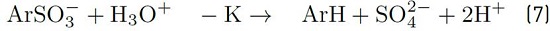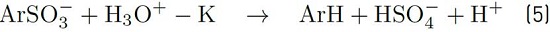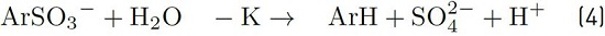 For each decomposed sulfonate molecule, a hydrogen ion is produced. It can be monitored by pH measuring of solution. Reagent [ArSO3-] refers to sulfonate concentration at time t.