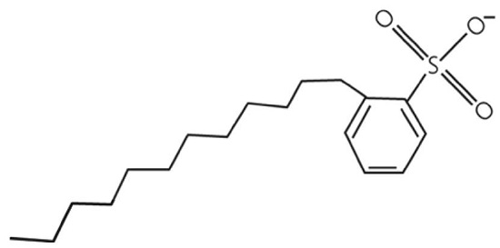 Each alkyl aryl sulfonate (AAS) molecule is formed by an aromatic functional group, generally an aromatic hydrocarbon. Inside aromatic functional groups, there are two clear examples of widely used aromatic groups on petroleum industry, these are benzene and toluene. In the case of AAS, there is a specific nomenclature based on aromatic group and molecular structure, one example of this is toluene. AAS form by toluene are of two types, branched alkyl-toluene (ATS) and lineal alkyl-toluene sulfonates (LTS). Figure 5 shows a schematic molecular structure of a typical LTS.