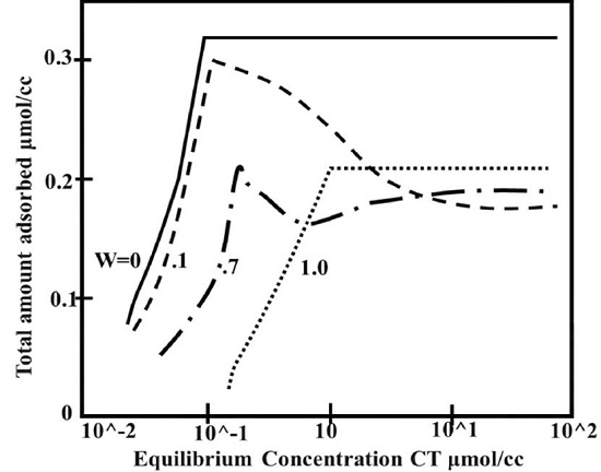 At equilibrium, that is under isothermal static conditions, the amount of adsorption of surfactant onto a solid is a function of concentration only. Adsorption of the chemical species from a surfactant solution onto a solid surface could be understood as a competition between solute and solvent for the available adsorption sites on the solid surface[28].